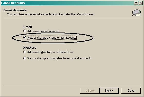 In order to change the Outgoing Mail Server, open Outlook, select Tools – Accounts… If asked, indicate you want to change an account: